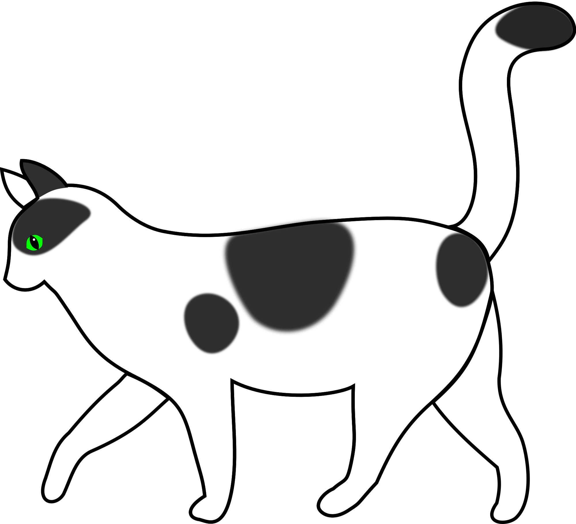 I've sketched it first on a tablet and then cleaned up a bit with Bezier curves. The cat was transparent instead of white; now I've fixed it. I've also added a "negative" version" :)
