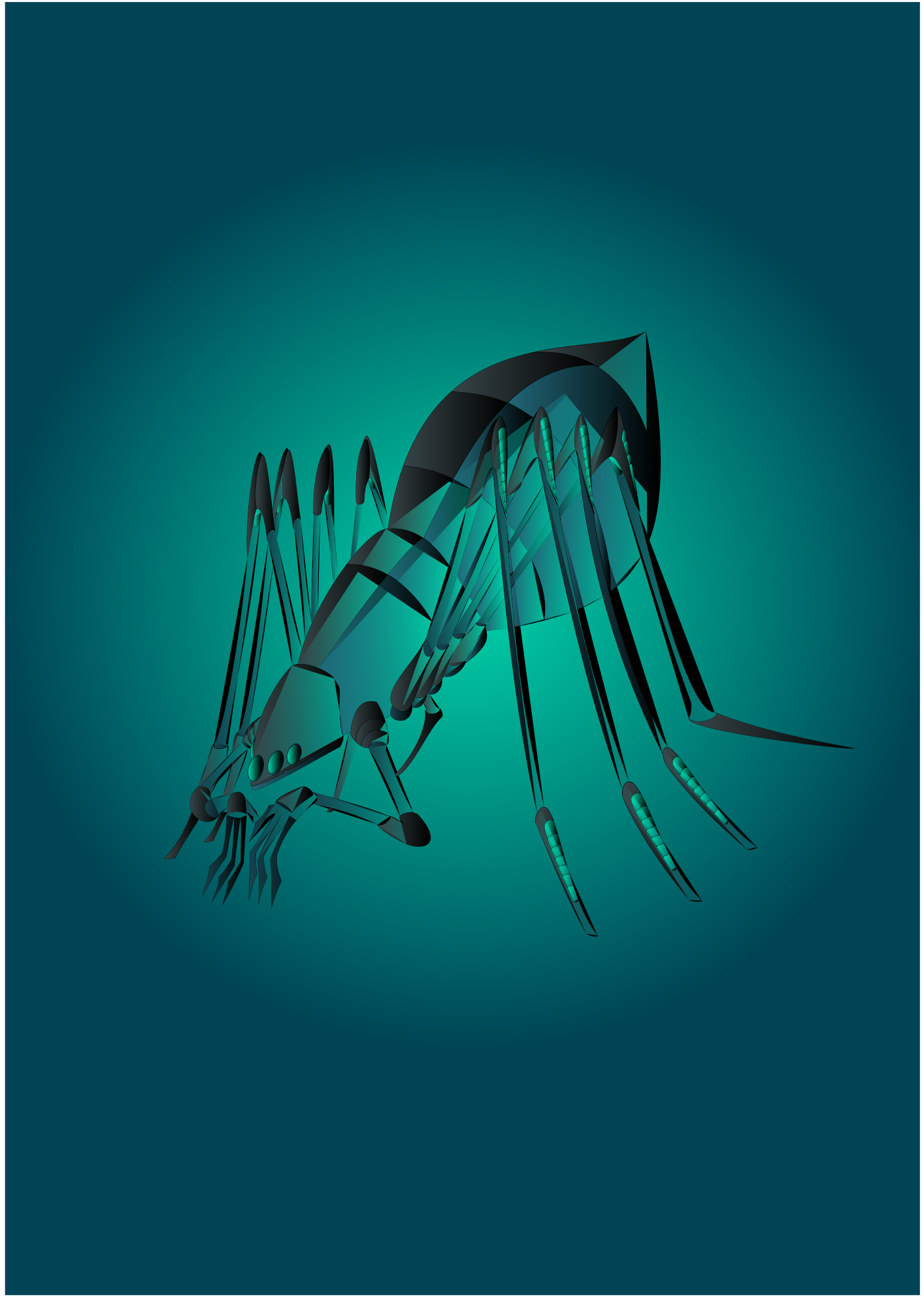 A spider like creature with a cyan glow.